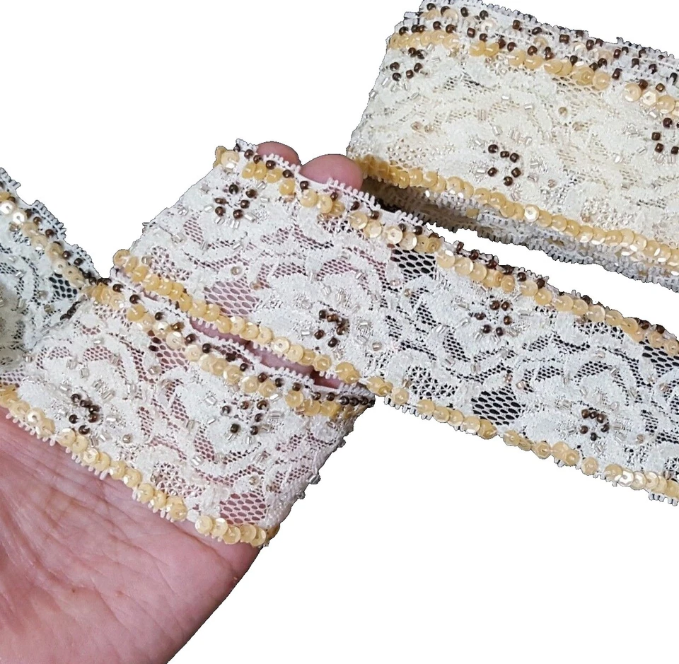 Borde de malla con lentejuelas dorado y negro de 2 yardas/artesanía/desgaste de baile/3,25" de ancho